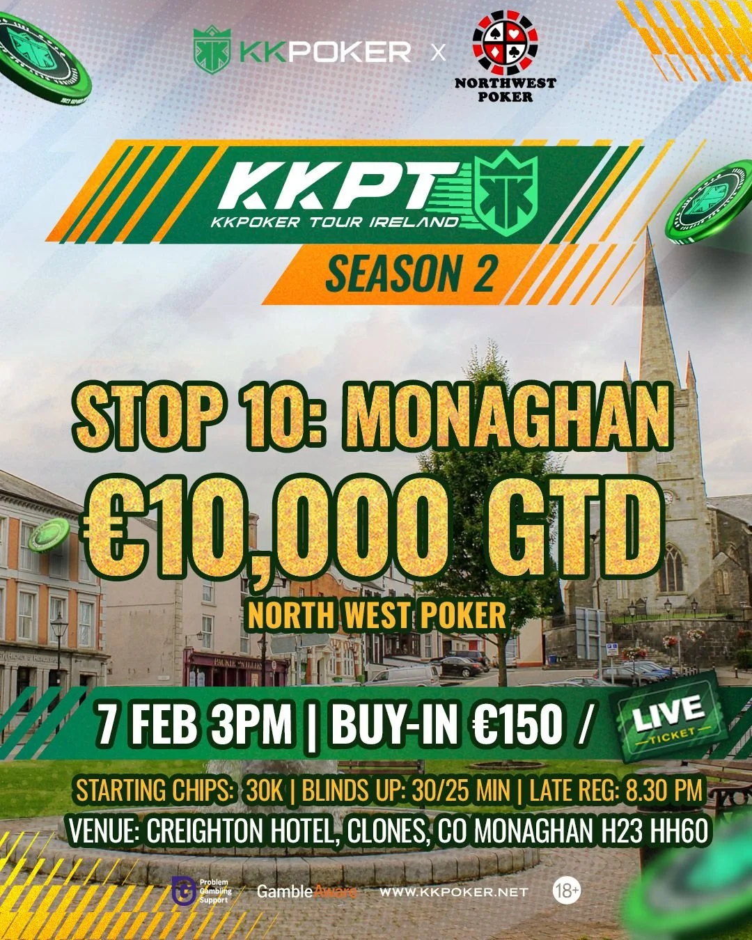 Qualify online on KKPoker for as little as $10 and satellites run 4 times per week (2 weeks before each stop) all of which can be used at any stop, so what are you waiting for!! get yourself qualified to the KKPoker Tour.